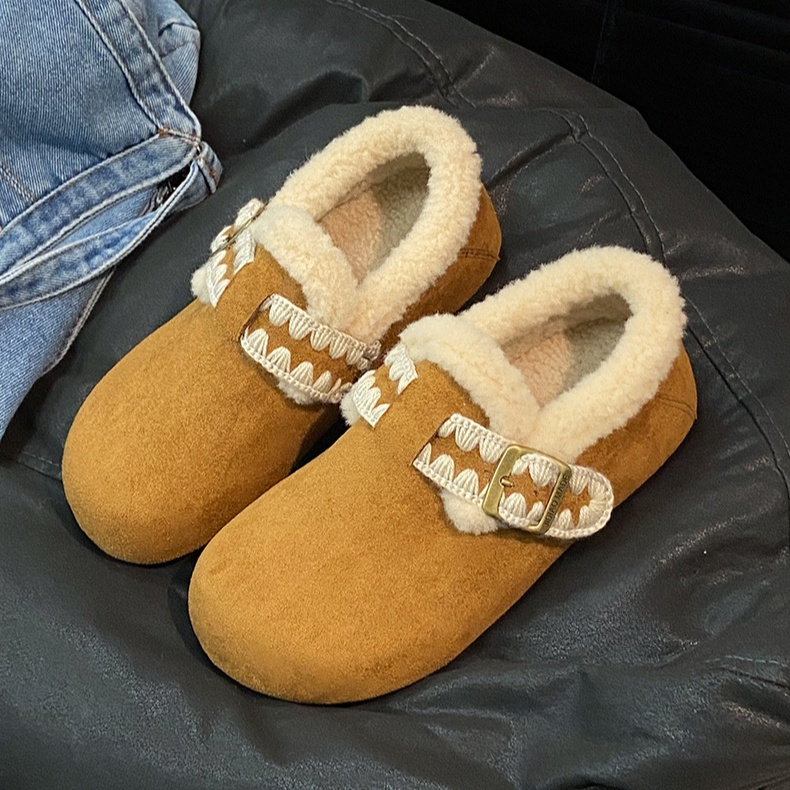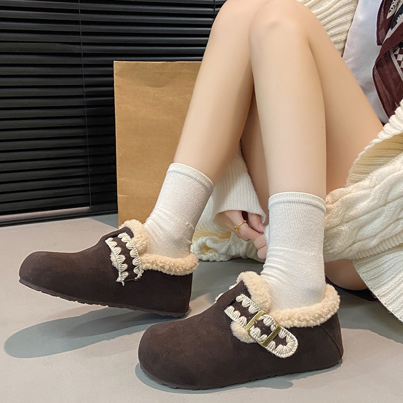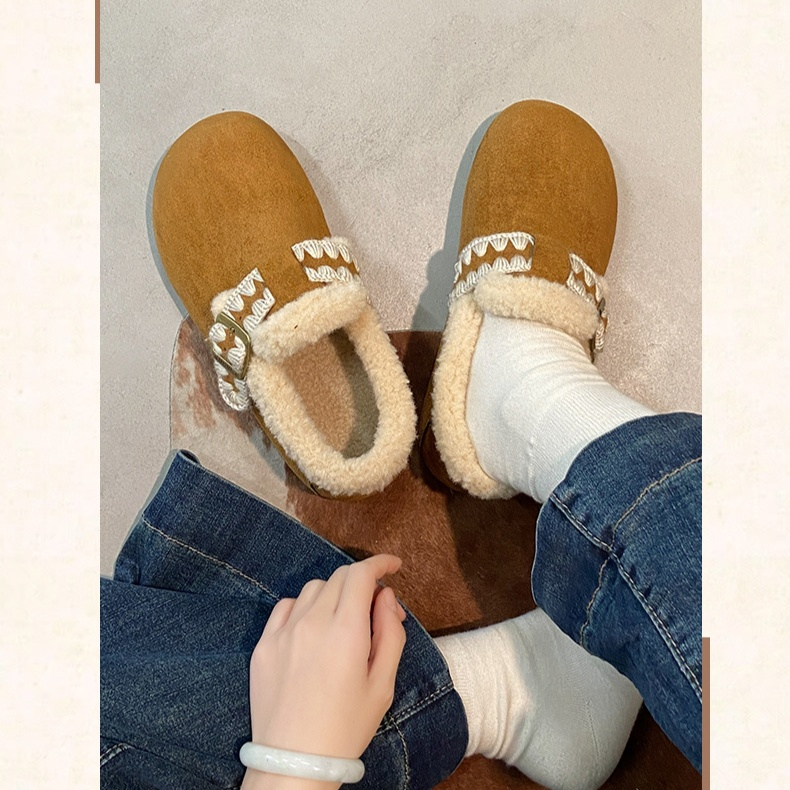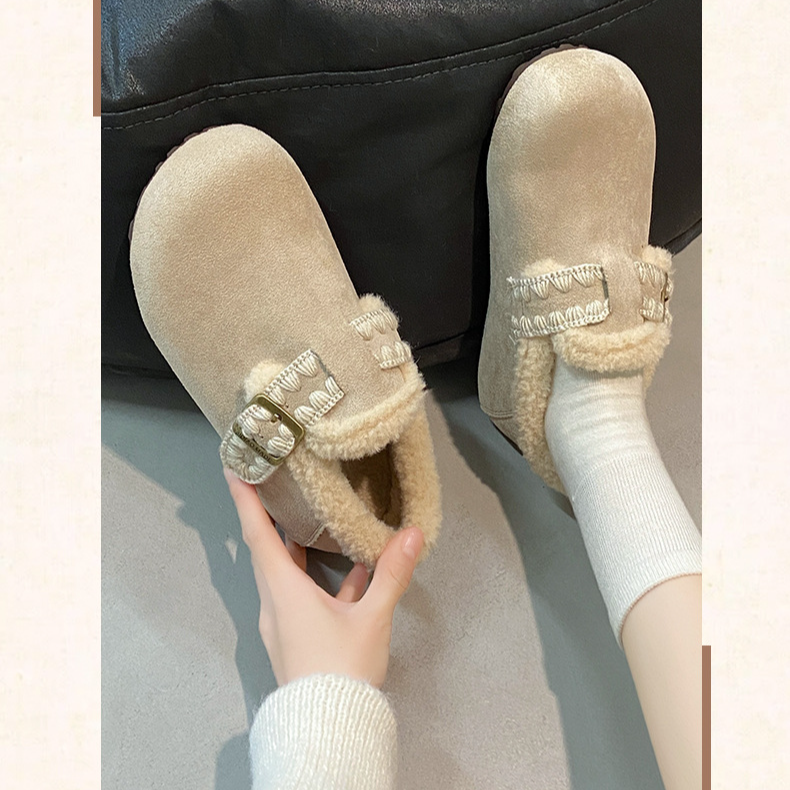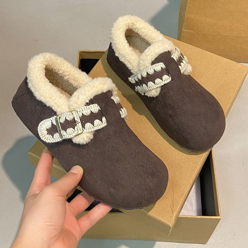 加絨加厚保暖平底一腳蹬軟底鞋